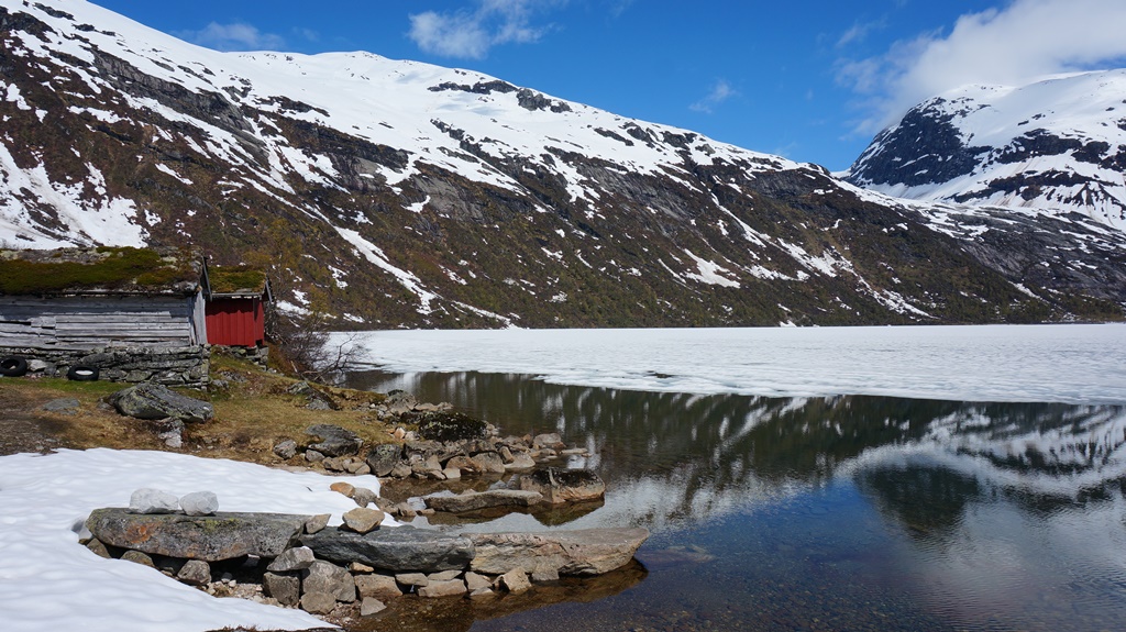 Während die Temperaturmarke hier in Deutschland gerade über 30 Grad steigt, sah es vor einer Woche in Norwegen ein bisschen anders aus. Gleich auf unserer ersten Tour durchkreuzten Massen an Schnee unseren Plan vom Torsnessstølen zum Skarvatn zu wandern. Dafür hatten das Glück Berglemminge und Schneehühner zu sehen… fünf Stunden Winteratmosphäre reichten uns dann aber auch.