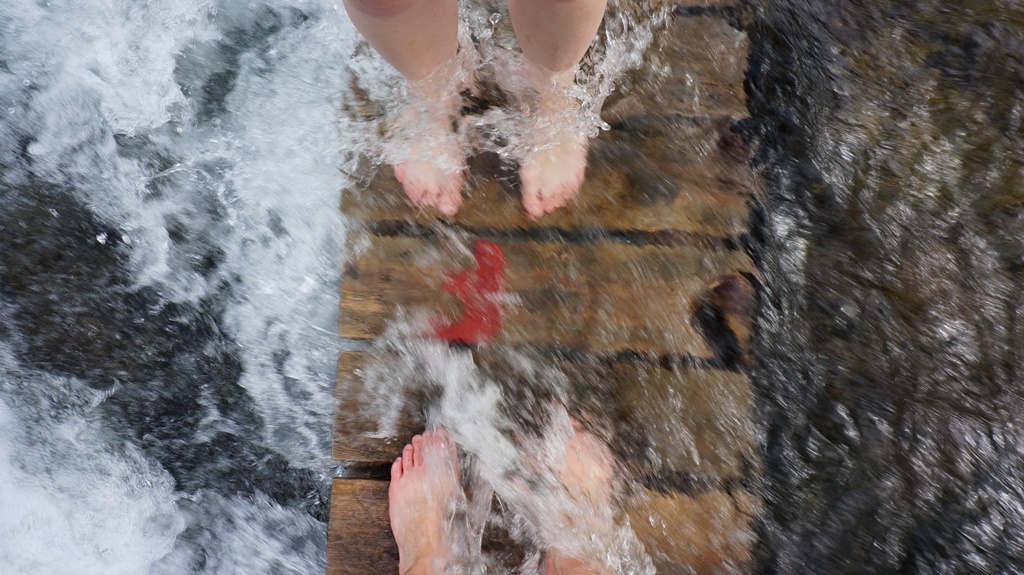 Und dann Schuhe aus – und durch. Kältegrad: Ein Kneippbecken ist ein Witz dagegen. Trotzdem konnten wir uns den Spaß nicht entgehen lassen am Ende mehrfach über das letzte Stück zu springen.