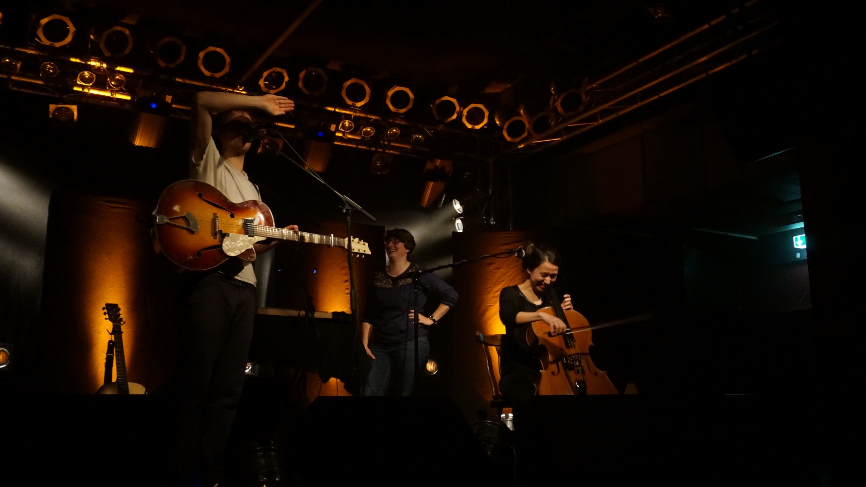 Weil Teesatz, Oh Bartleby, Wände oder Vorwärts ist keine Richtung einfach großartige Songs sind und wirken. Immer. Weil im Publikum Menschen waren, die alle Songs mitsingen konnten. Und weil Hannes viel erzählte. Über die Geschichten hinter den Songs und wieder mal über Alkohol. Nach einem Glas Weißwein wäre einfach alles ein bisschen einfacher. „Kenn ich“, kam es unerwartet aus dem Publikum. Ein Sportlehrer. Die kannte wiederum Hannes. Ja, es wurde viel gelacht und sich viel gefreut und genauso viel applaudiert. Nach der eineinhalbjährigen Pause war also alles wie früher. In gut. Und die wundervolle Clara wurde nach dem Aufstieg von der Praktikantin zur Volontärin in Rostock endlich zur Vizepräsidentin von Spaceman Spiff ernannt. Verdienterweise. Wie gut das Cello der Musik von Hannes steht hatte ich ja schon einmal geschrieben.