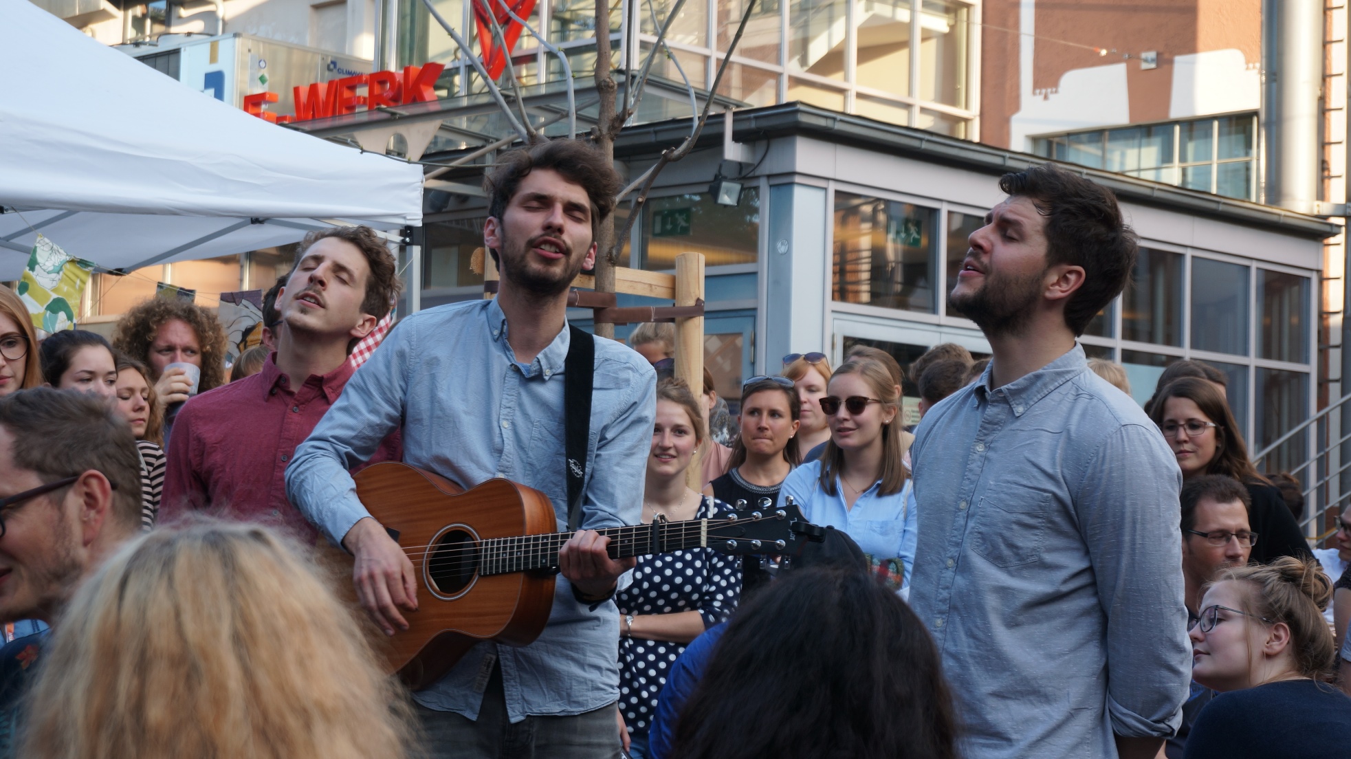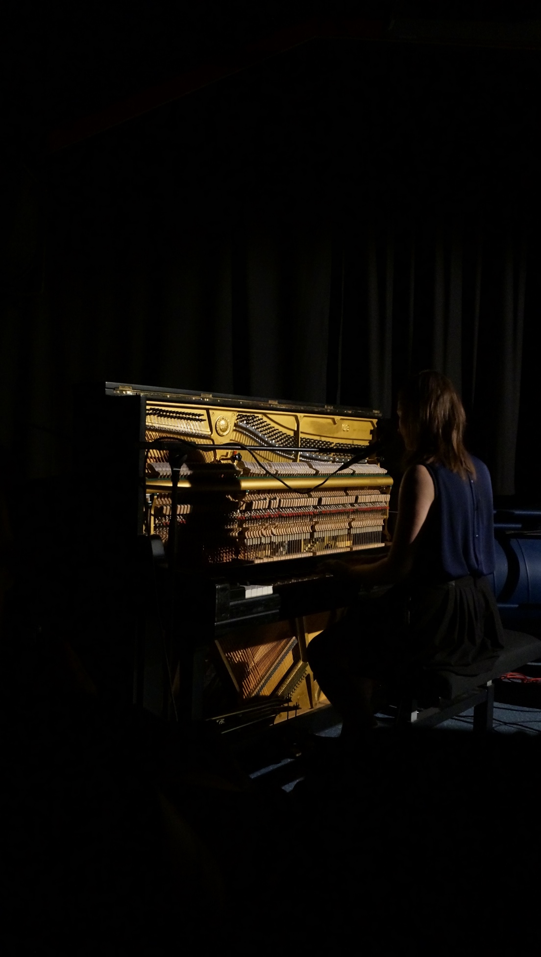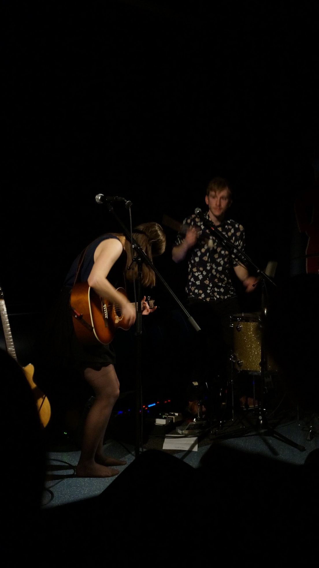 Mit Linda Rum drehte sich das um 180 Grad. Ein Lied – in diesem Fall Mary – und die kleine Kinobühne war gefüllt mit purer Energie. Mikro und Verstärker hätten getrost zuhause bleiben können. Denn das mitfiebernde Stampfen reichte von der Bühne bis unter die Sitze und jeder Energieaufschrei hätte auch so noch einige weitere Räume füllen können. Und das Publikum applaudierte so viel, dass Linda die dankbare Ergriffenheit bis über beide Ohren im Gesicht stand. Und das lag nicht am „netten Publikum“. Die ruhigen Klavierstücke wie Winding Road, die durchdringende kraftvolle Stimme, die E-Gitarre und Drums von Multitalent Fabi, die mitnehmenden Texte wie bei Your Home Can Be Anywhere und Old & Wise und der so entgegenspringende Elan Hoch 10… das ist es, was bei Linda Rum absolut überzeugte.