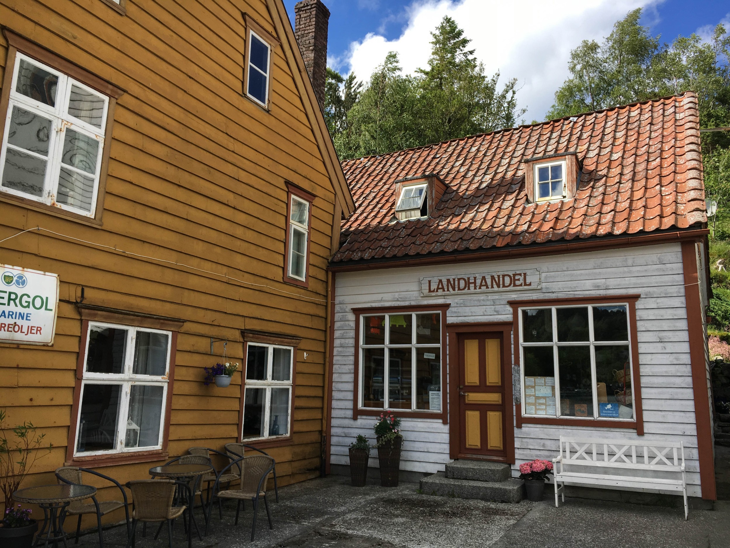 Auf unserem Rückweg machten wir mit dem Auto noch einen kleinen Umweg zur Rugsund Handelsstad. Seit dem 16. Jahrhundert wurde hier Handel betrieben, genauso wie heute. Nur, dass nun auch Schiffsdiesel und Softeis verkauft werden. Von einem sehr freundlichen Mann in seinem „Landhandel“, in dem viele Güter nur einmal im Regal stehen.