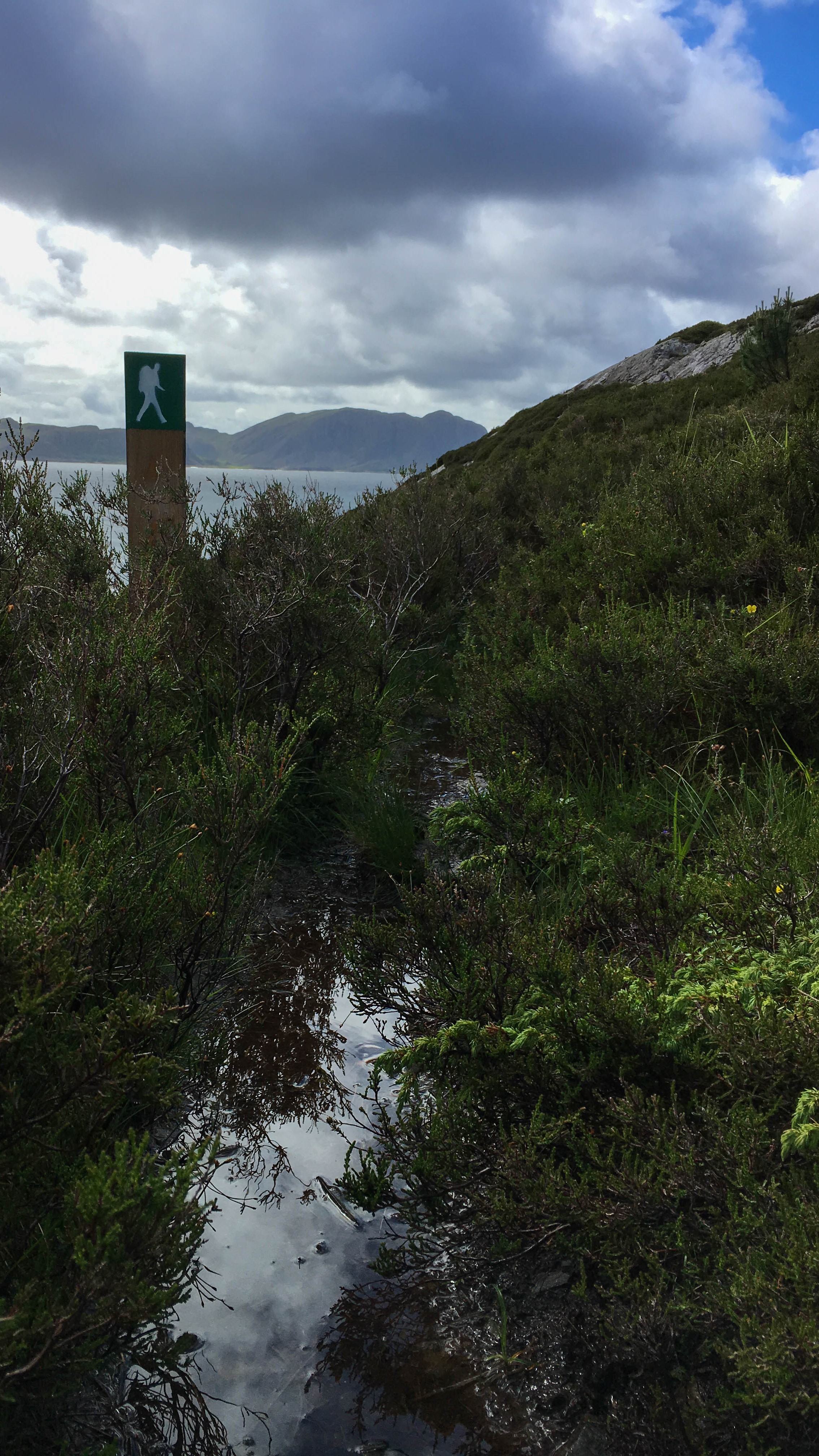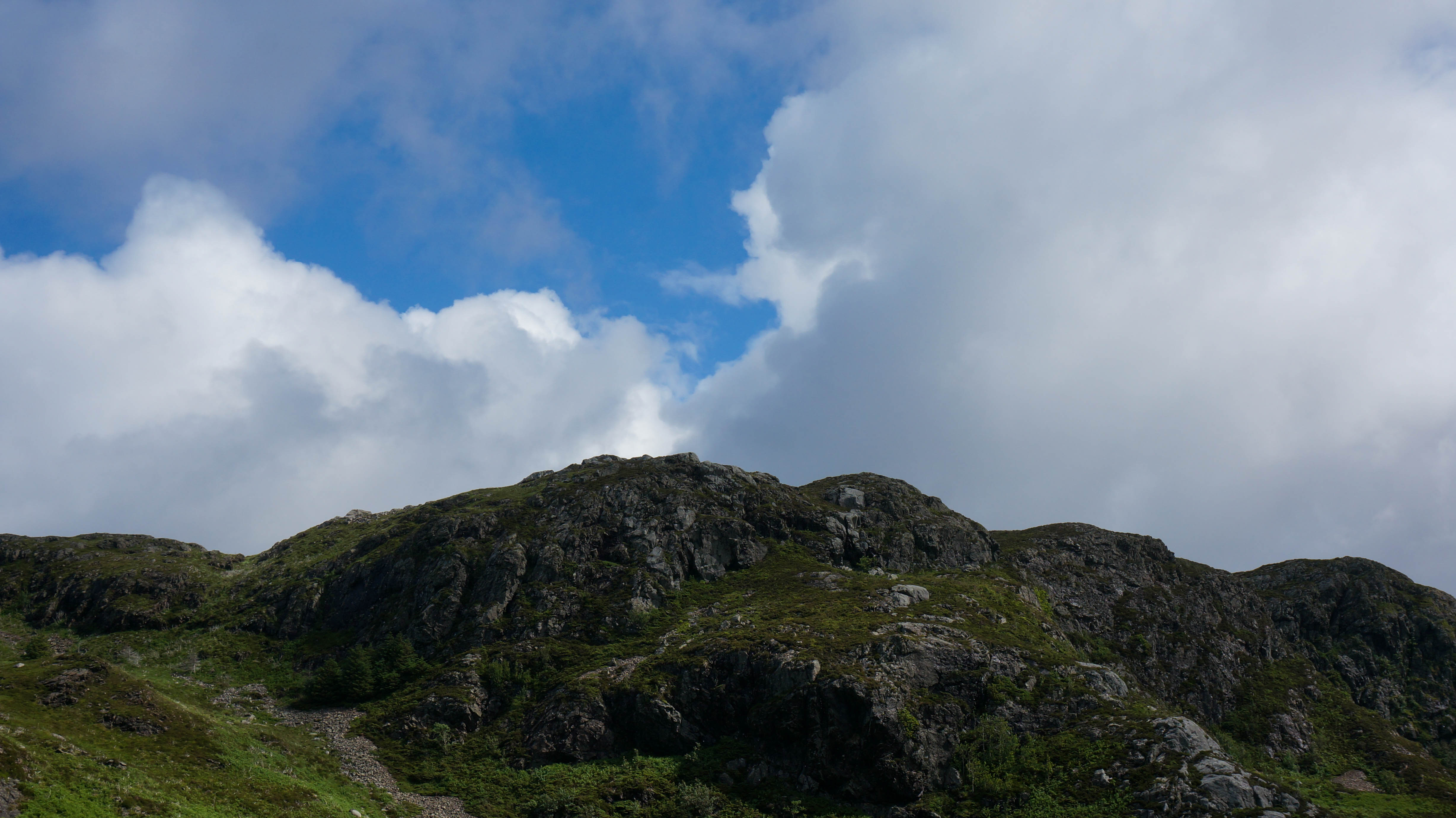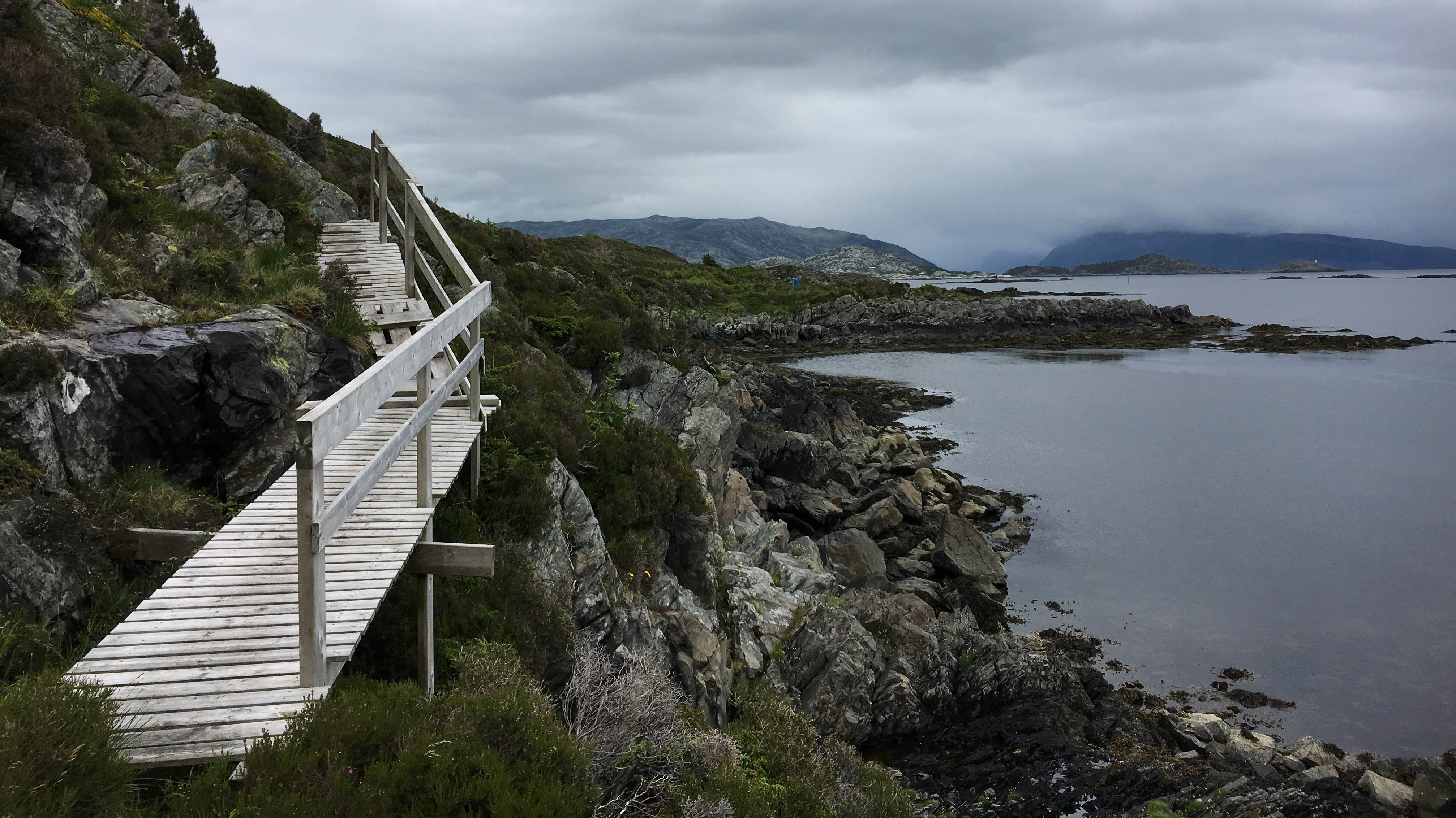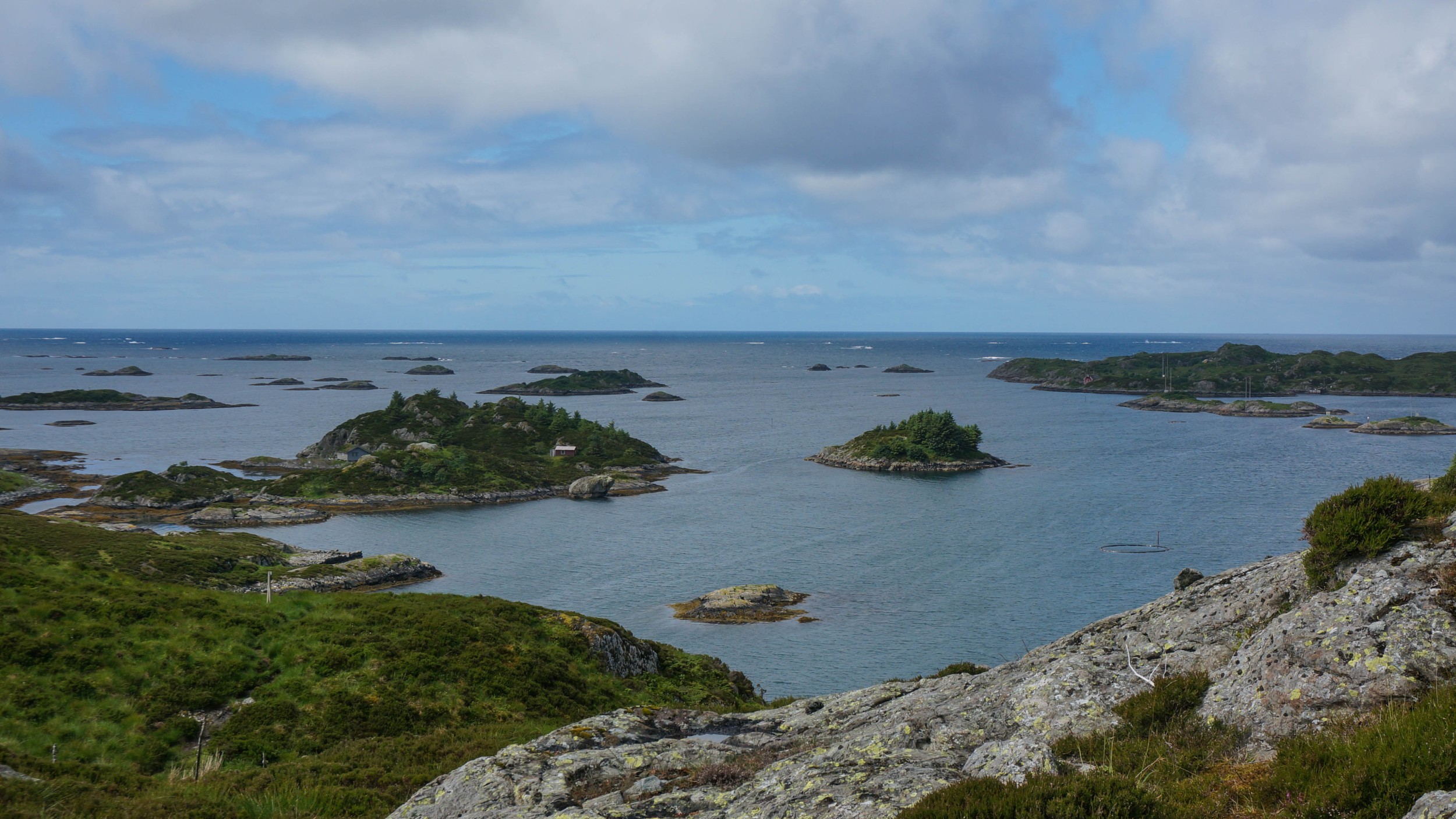 Für unsere vorletzte Wanderung ließen wir uns auf der Insel Frøya am Ende des Asphalts absetzen. Nachdem unsere Wanderungen im Hinterland meist in Nebel und Regen versunken waren, wollten wir noch einmal an die salzige Luft und etwas blauen Himmel sehen. Wobei die Schuhe auch hier dichthalten mussten.