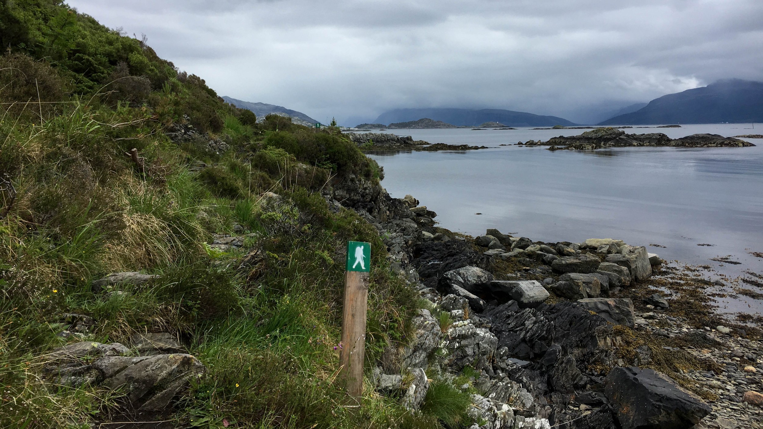 Nach ein paar Tassen Tee verabschiedeten wir uns von den Schafen, schauten noch einmal beim gelben Haus vorbei und folgten dann einem sehr bequemen Weg nach Kalvåg… immer am Meer entlang.