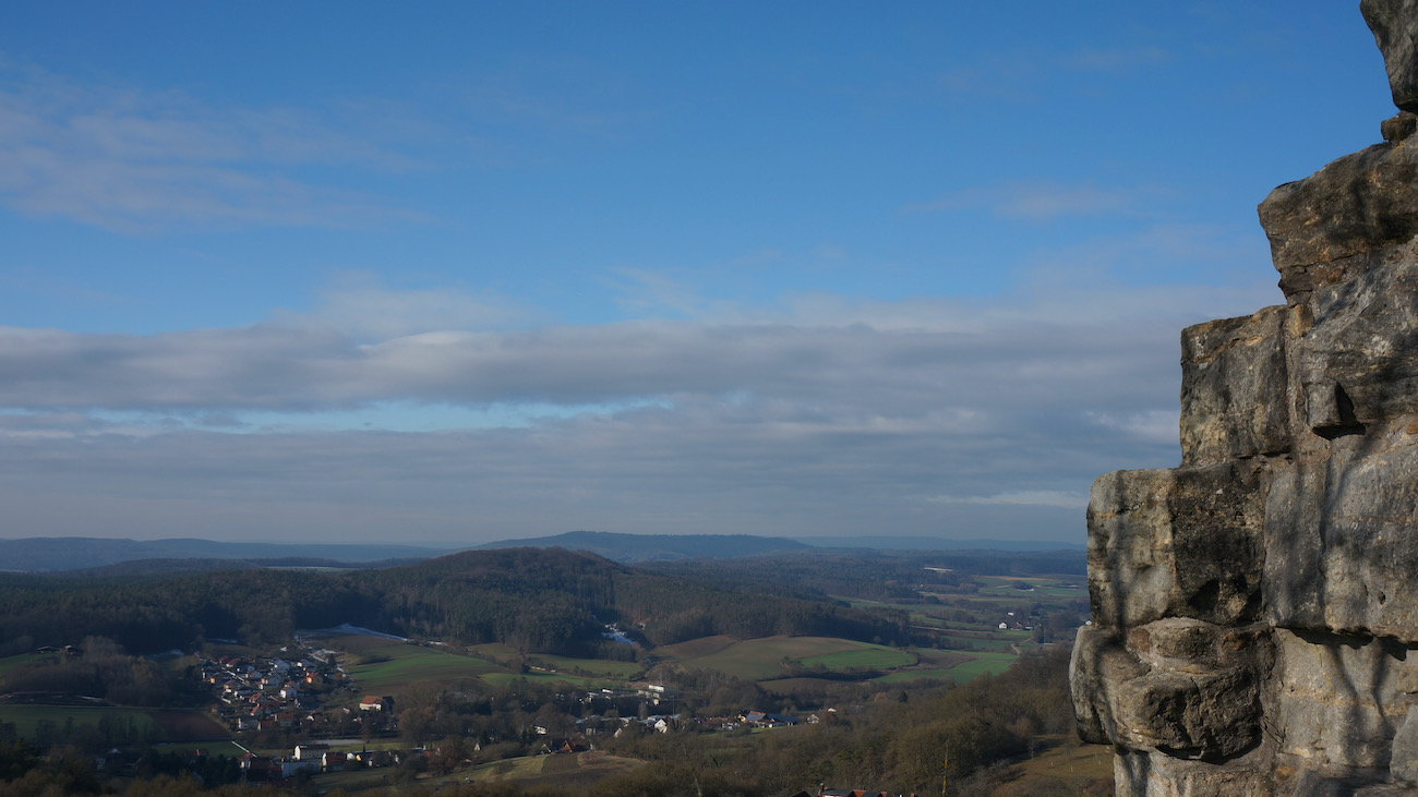 Und dann gab es ja noch das Eiszapfengewölbe und die Ausblicke – runter ins Dorf und in die Weite der Hassberge.
