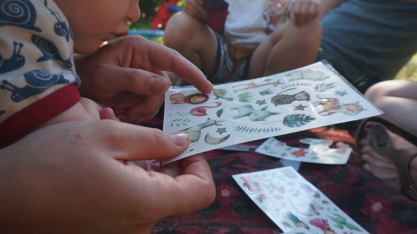 Es brauchte kein Kinderprogramm. Wiese, Bäume, Sand zum Matschen („Anti-Mücken-Gel“ wurde da zum Beispiel gemischt), Raum zum Rennen und Hängematten. Die Kinder-Tattoos wanderten dann auch auf mehr erwachsene Arme und Backen. Aber die wollen ja eben auch Kinder sein.