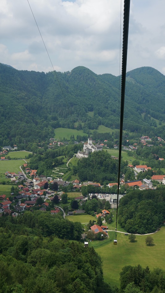 Nachdem wir am Vortag nach unten an den Chiemsee gefahren waren, zog es uns diesmal hinauf. In Aschau stiegen wir in eine der kleinen Gondeln der Kampenwandseilbahn und hofften auch einen weiten Blick auf den Chiemsee und die umliegenden Berge.