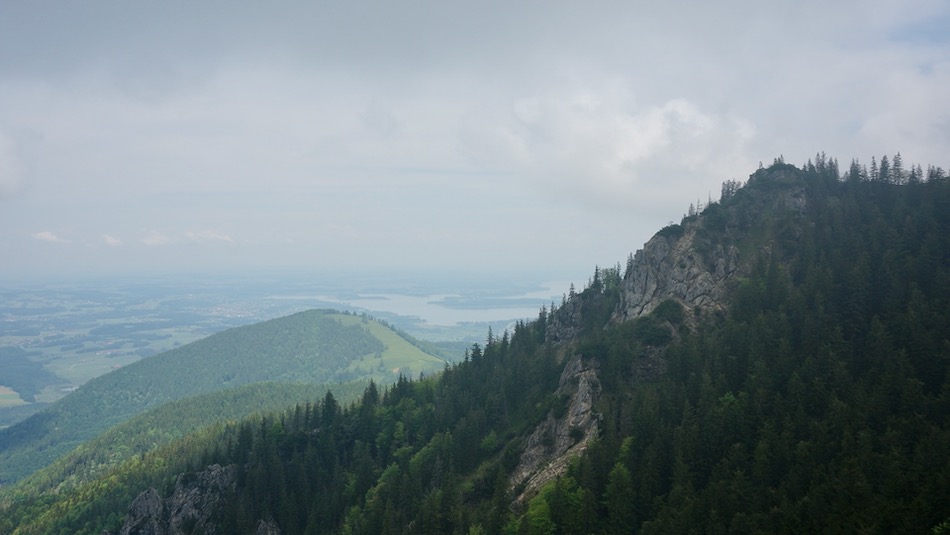 Und diesmal war es zwar sehr diesig, aber keine Wolke und kein Nebel verdeckten den Blick auf den Chiemsee und das imposante Schloss Hohenaschau im Tal.