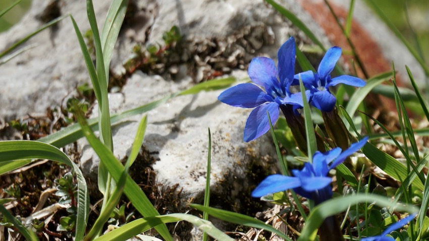 Alles ok. Wir gingen einfach in die andere Richtung. Wir freuten uns über Kleinigkeiten: Enzian, leckeres Knäckebrot und den Erfolg, doch noch einen ameisenstraßenfreien Picknickplatz gefunden zu haben.