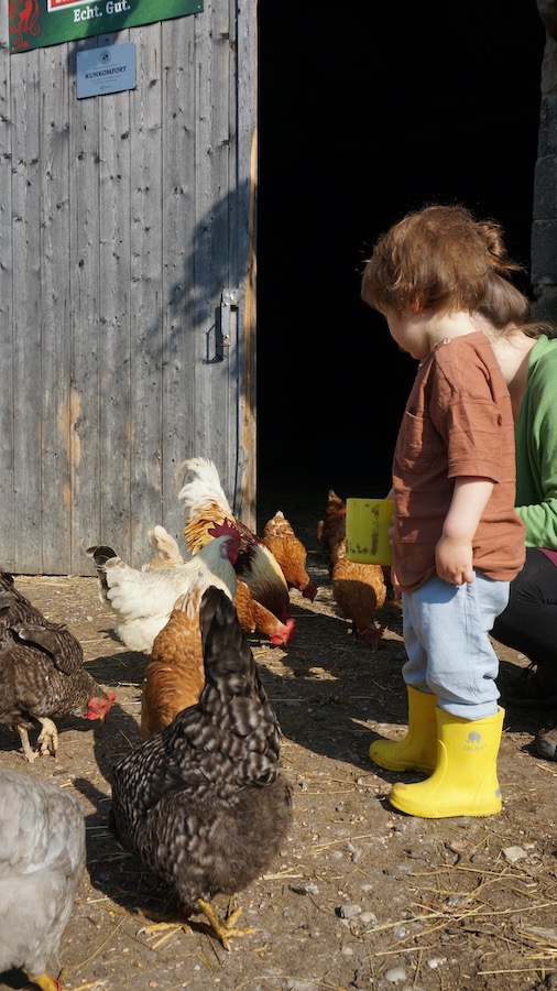 Nach der Bergwanderung am Vortag hatten wir beschlossen, einen ganzen Tag den Bauernhof zu entdecken. Marianne – unsere Vermieterin – hatte unser Kind schon am ersten Tag gefragt, ob es morgens die Hühner füttern wolle. Ein begeistertes Ja war die Antwort gewesen.
