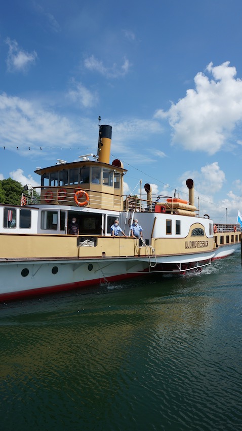 1. Ja, die Schaufelräder und auch ihr wummerndes Rauschen sind wirklich toll. Aber auch, dass der Anblick dieser Schiffe ein bisschen in der Zeit zurückversetzt. Das abgebildete Schiff ist Baujahr 1926! Da musste sicher oft gestrichen und renoviert werden ;)