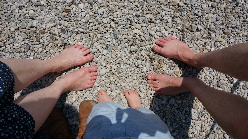 An der Seepromenade fanden wir ein kleines Stück Strand, wo unsere Füße eine Abkühlung bekamen – und eine Bank, auf der eine halbe Melone in unseren Bäuchen verschwand.