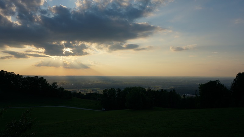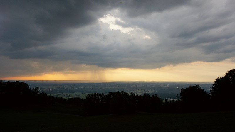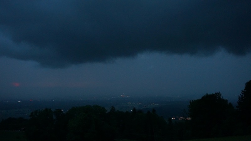 Am letzten Abend auf dem Rieplhof ging unten in Rosenheim nochmal ein kräftiger Regenschauer nieder. Spätestens jetzt vermisste ich das Teleobjektiv schmerzlich… aber das machte eben auch Urlaub – zuhause.